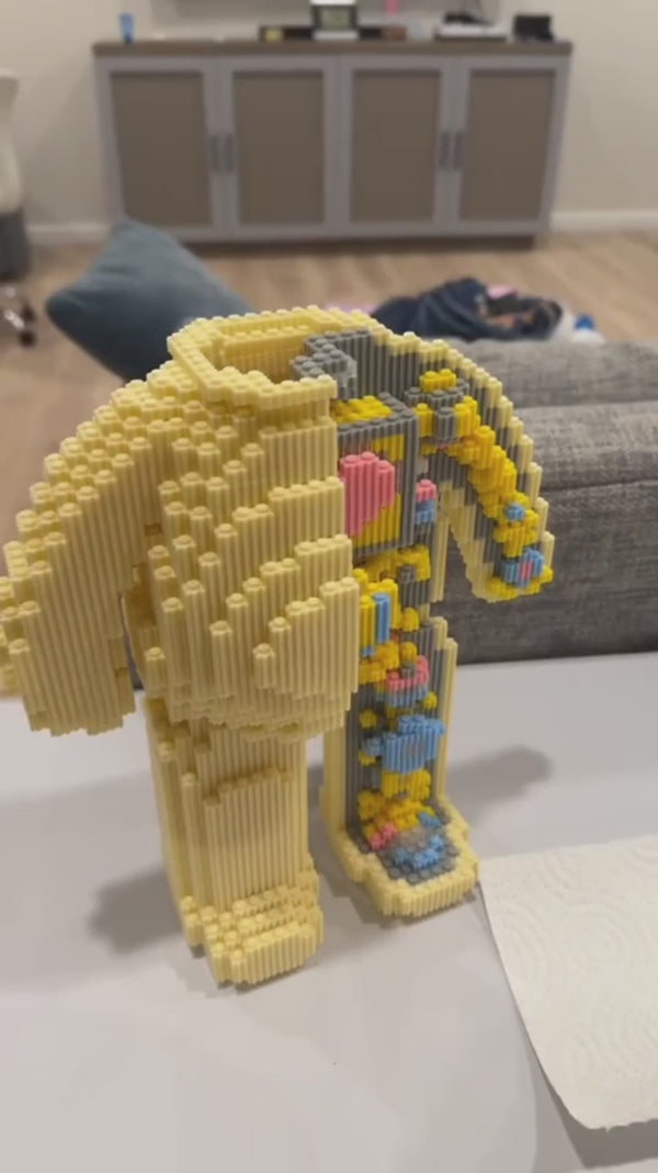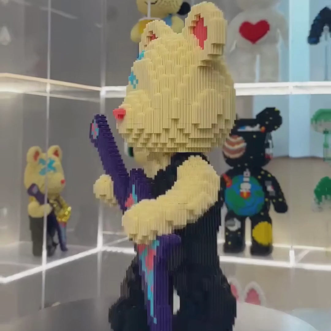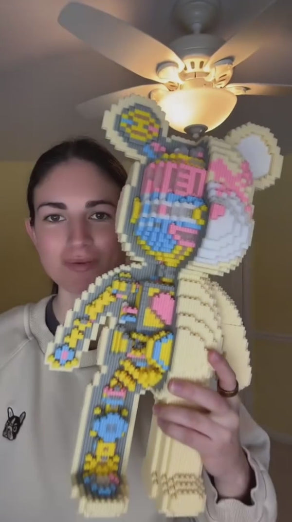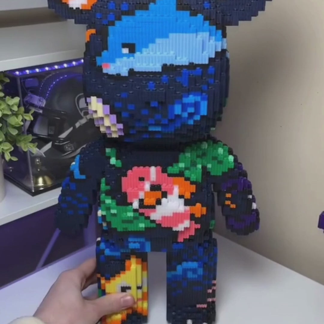 Une fois bien assemblé, le nounours est très solide grâce à la qualité des briques qui s’emboîtent parfaitement — idéal pour la déco.